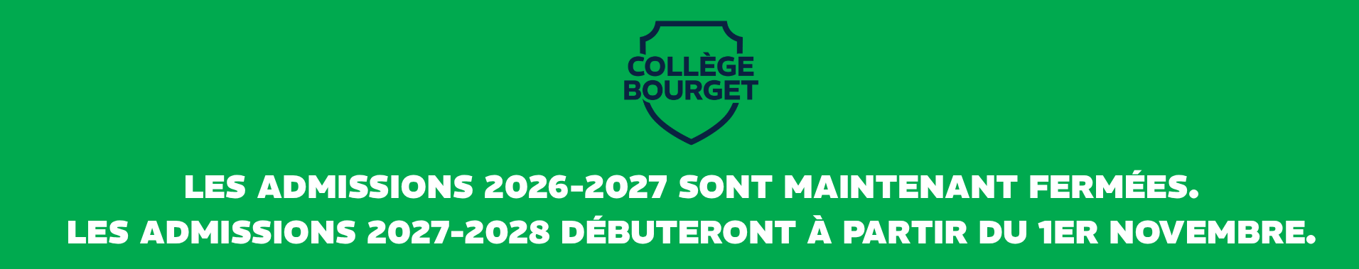 L'assurance maladie obligatoire est souscrite par le Collège en votre nom. Elle offre un régime complet aux élèves pour couvrir le coût des soins de santé pendant leurs études au Collège Bourget. (Environ 750 $ CAD).